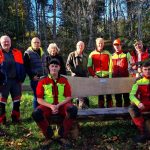 Die  Forstauszubildenden um Revierföster Wolfram Schmid hatten die Bank mit Roland Hauser gebaut und aufgestellt. Am vergangenen Freitag war die offizielle Übergabe der vom Albverein gestifteten Bank.